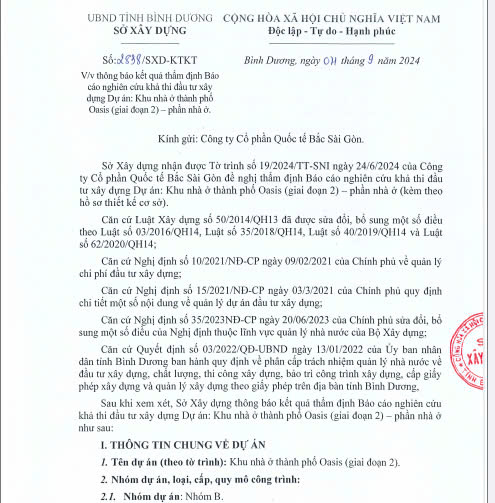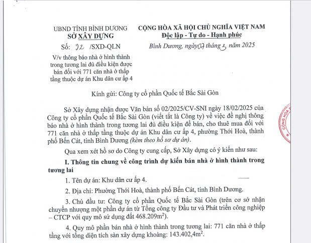 - Chủ đầu tư: Công ty Cổ phần Quốc tế Bắc Sài Gòn (SNI)