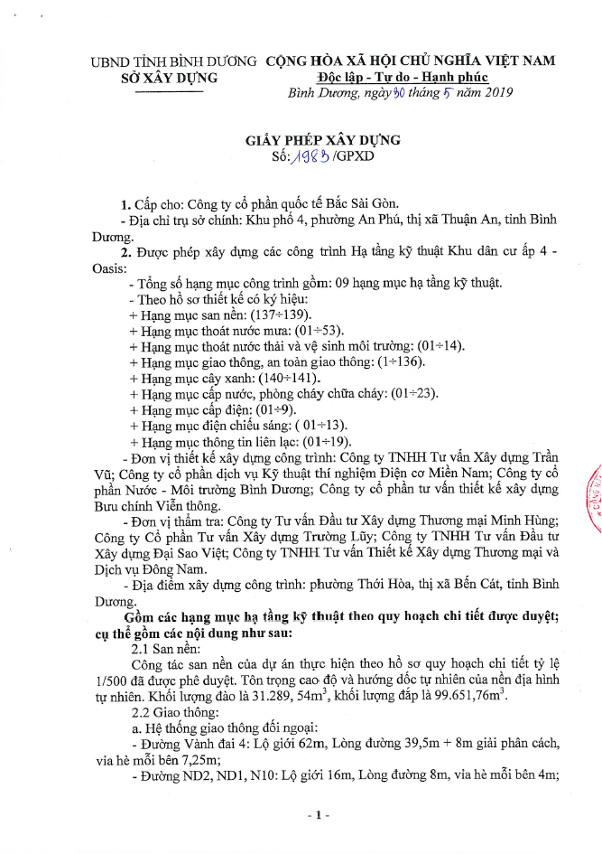 Pháp lý đã có: Giấy phép bán hàng 771 căn nhà ở thuộc Khu nhà ở Thành phố Oasis (The Oasis Riverside)