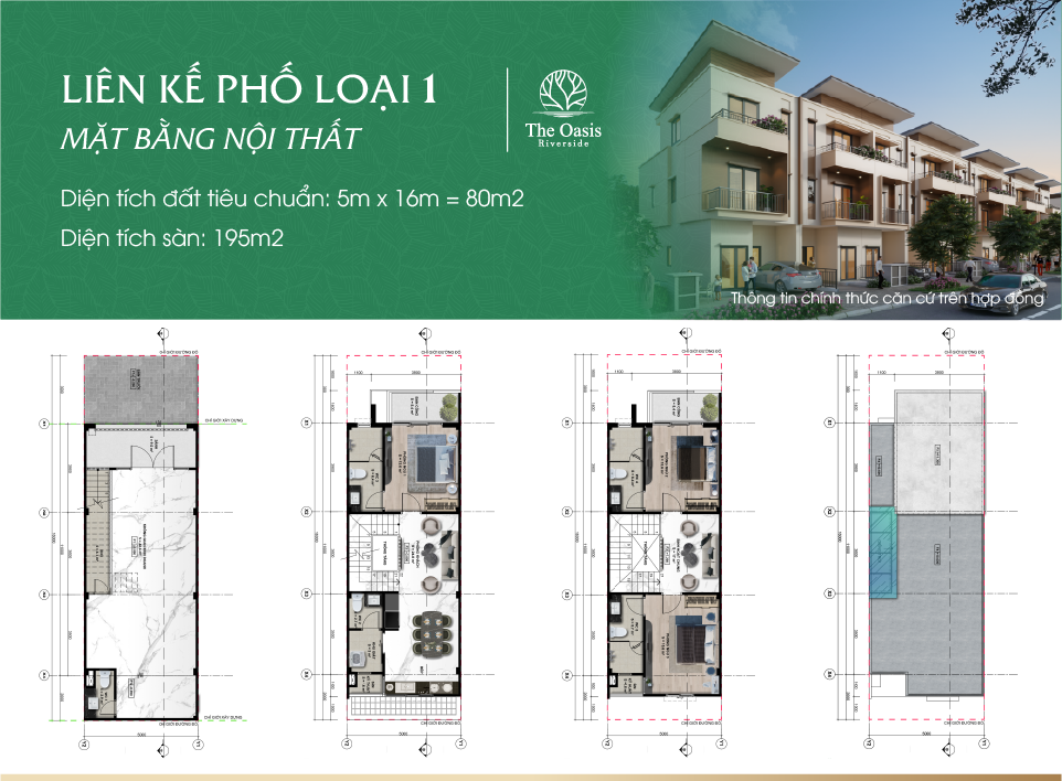 Nhà phố và biệt thự tại The Oasis Riverside sở hữu thiết kế hiện đại, cao cấp và không kém phần sang trọng…đặc biệt tất cả các thiết kế đều được nghiên cứu thử nghiệm nhằm tối ưu công năng và nhận sáng tự nhiên ở tất cả mọi nơi trong ngôi nhà, tùy vào mục đích sử dụng có các loại mẫu nhà sau: