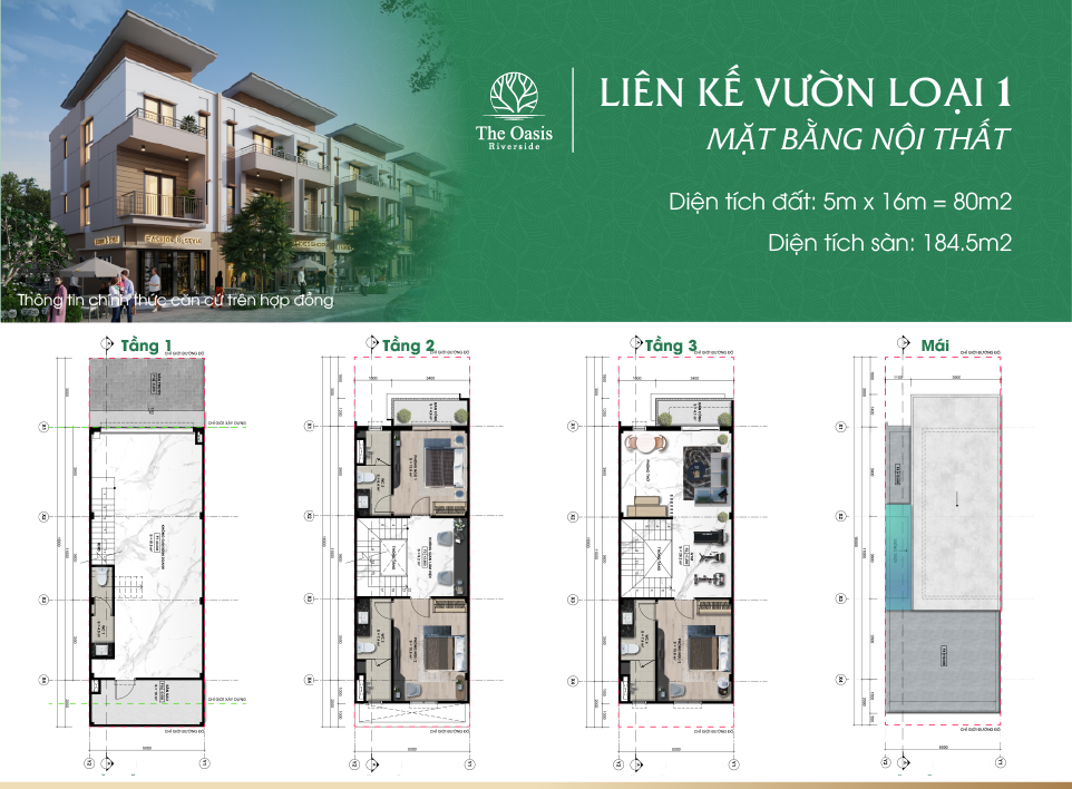 - Diện tích đất tiêu chuẩn: 80 – 185m2